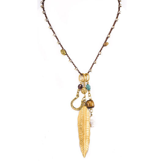 Looking for a lucky feather necklace? This Gold leaf pendant beaded chain necklace is simple yet classic with it's unique beading and charms. The length of this necklace is approx 39.″